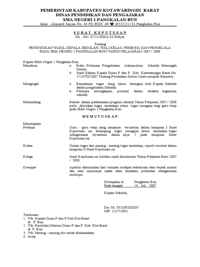 6 Contoh Surat Keputusan Sk Kepala Sekolah Format Wordi